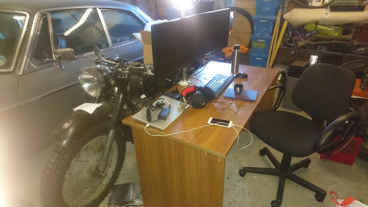 Last week I was set up on the dining table and it was a bit of a pain setting up and putting away each day. Now the children are all off school and there's 3 of them under 10yrs old running round and generally being children I've been voluntarily exiled to the garage. The back third of it is behind a very basic partitiion wall with a glass door in so I can still see the outside world. It's bloody freezing and never seems to warm up even with the little electric heater on. But on the plus side it's secluded, I can have the radio on, I can spend time browsing STW without being judged and I can leave it all set up at the end of the day. Desk is stolen from my son and there's a chair missing from the dining room. Not ideal, but at least I can still work in a socially distanced way.