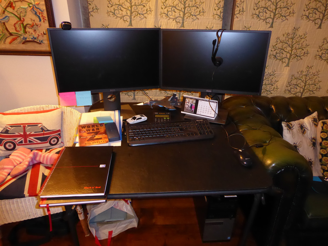 Not worked at home for a few years, had to clear all of the accumalted crap that had gathered on the desk. Work were kind enough to let us take our screens and docking stations home.