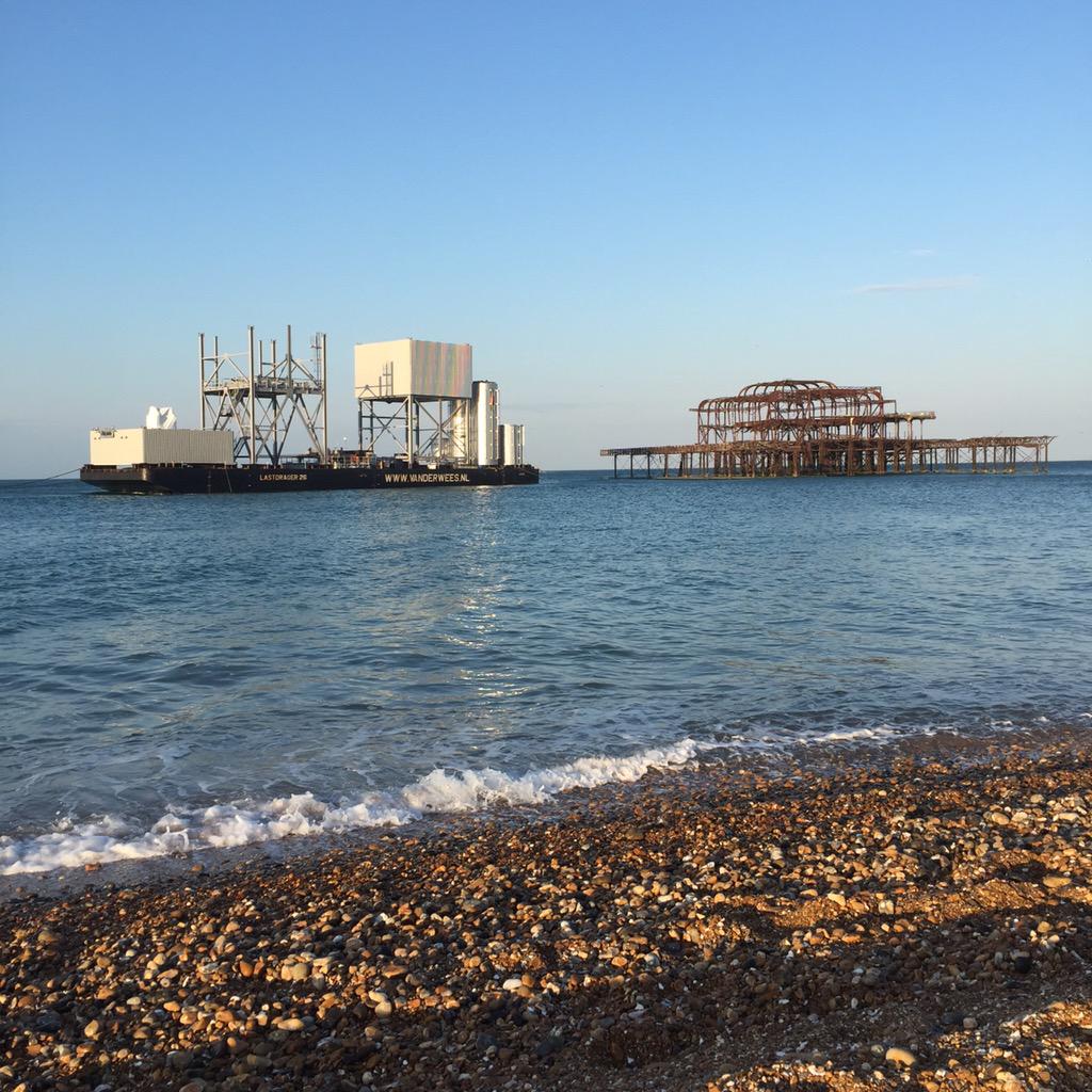 If you like engineering projects try and follow @TheBrightoni360 on twitter - it's been fascinating watching them build the foundations (2500 tonnes of concrete poured in one day), bring the sections up to the beach on barges and now begin building the tower. Have a look through their timeline for previous pics.