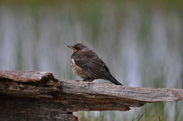 I’ve found another photo of a juvenile fieldfare, showing its back and wings a bit better, and it’s quite dark, so under some lighting conditions it could look as dark as a blackbird.