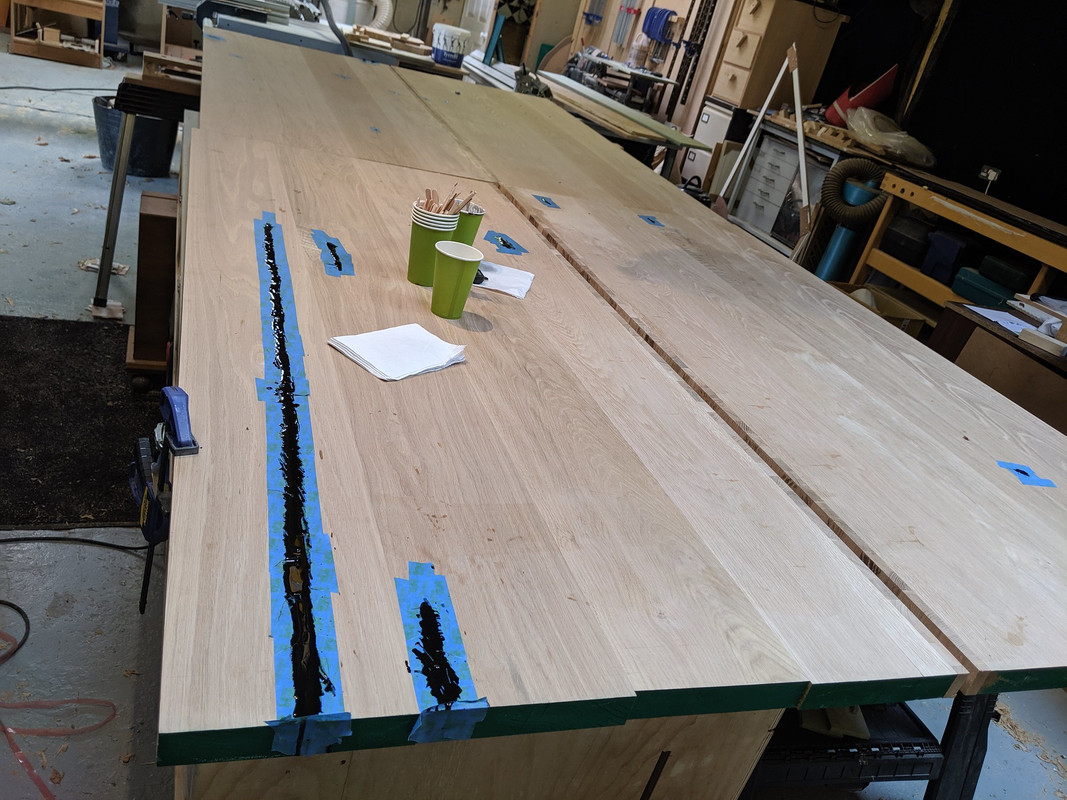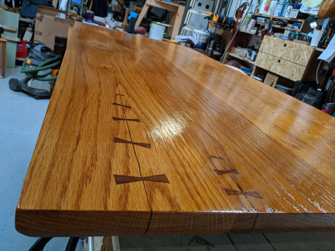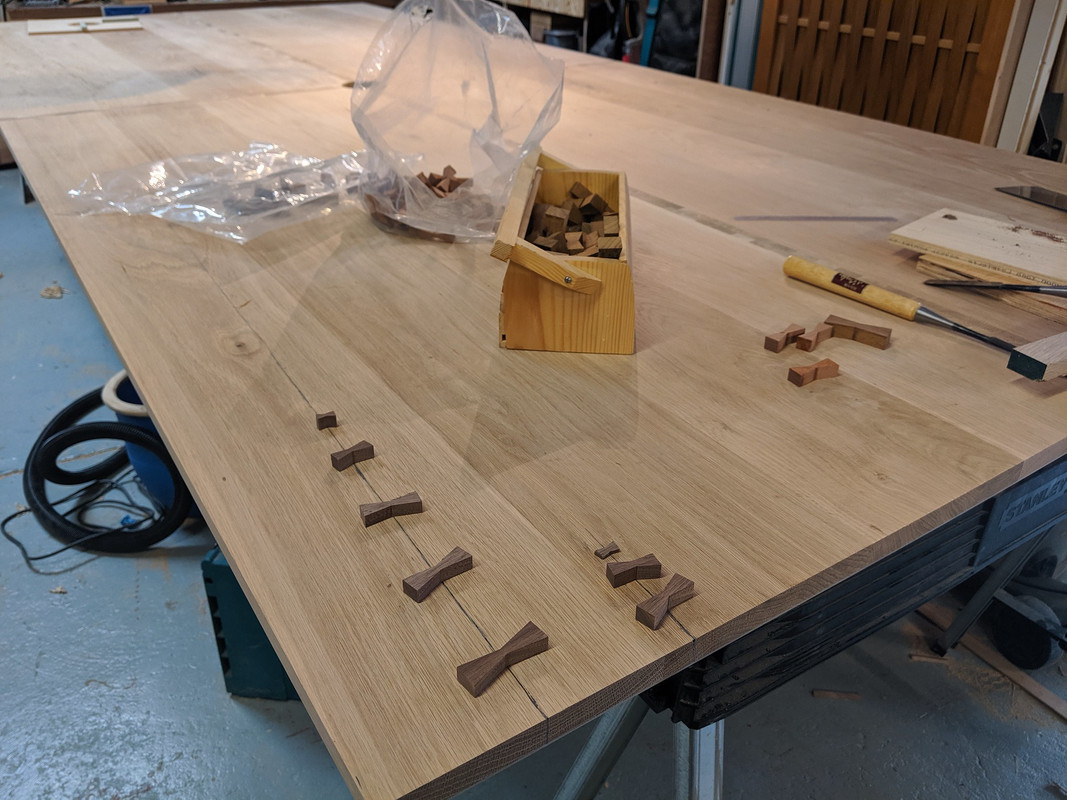 Using butterfly keys to prevent the cracks opening further would be the obvious option if the item was a showy thing like a posh dining table, but in this instance filling with an epoxy/metal powder mix sounds perfect for a work top/ table in heavy, regular use, where all sorts of dodgy stuff can get into the crack. (Ooer, missus). 😁