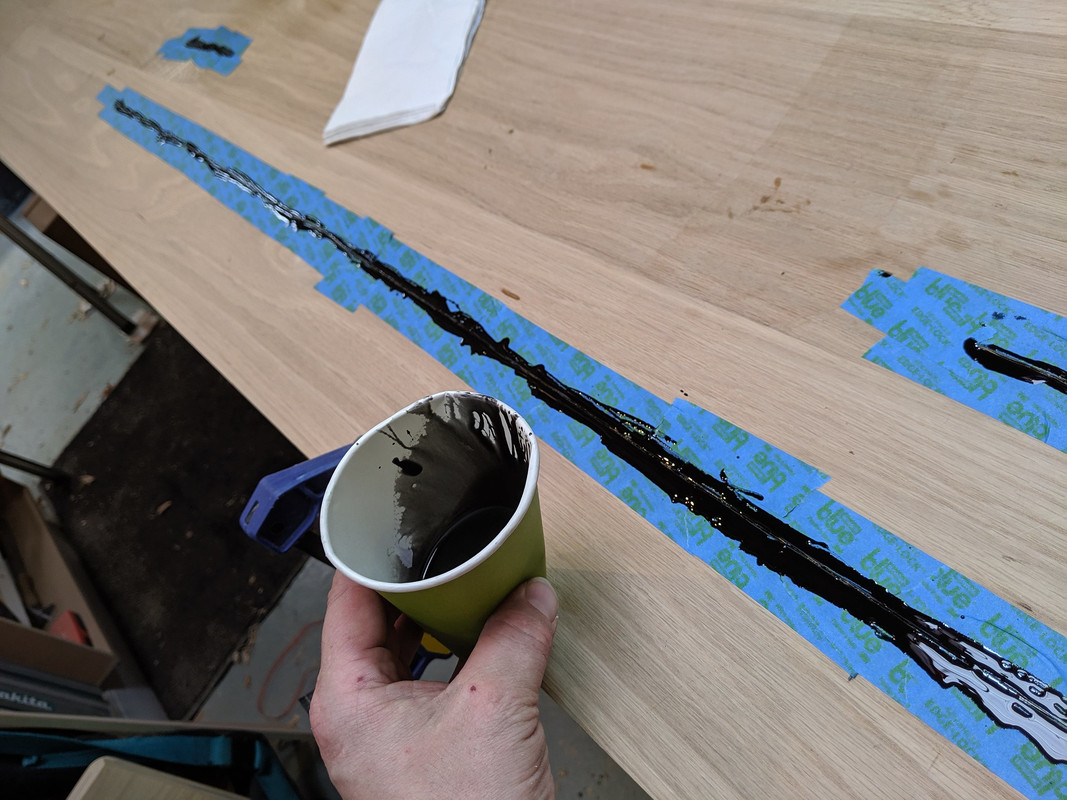 Look on youtube theres absolutely loads of videos on this at the moment. Plenty show what they use. Total boat seems popular but any marine epoxy should do the trick. The black dyes look quite cool as pure filling epoxy. I wouldn't go clear cos you’ll see all the bad bits, whereas black then sand the whole top should look great.