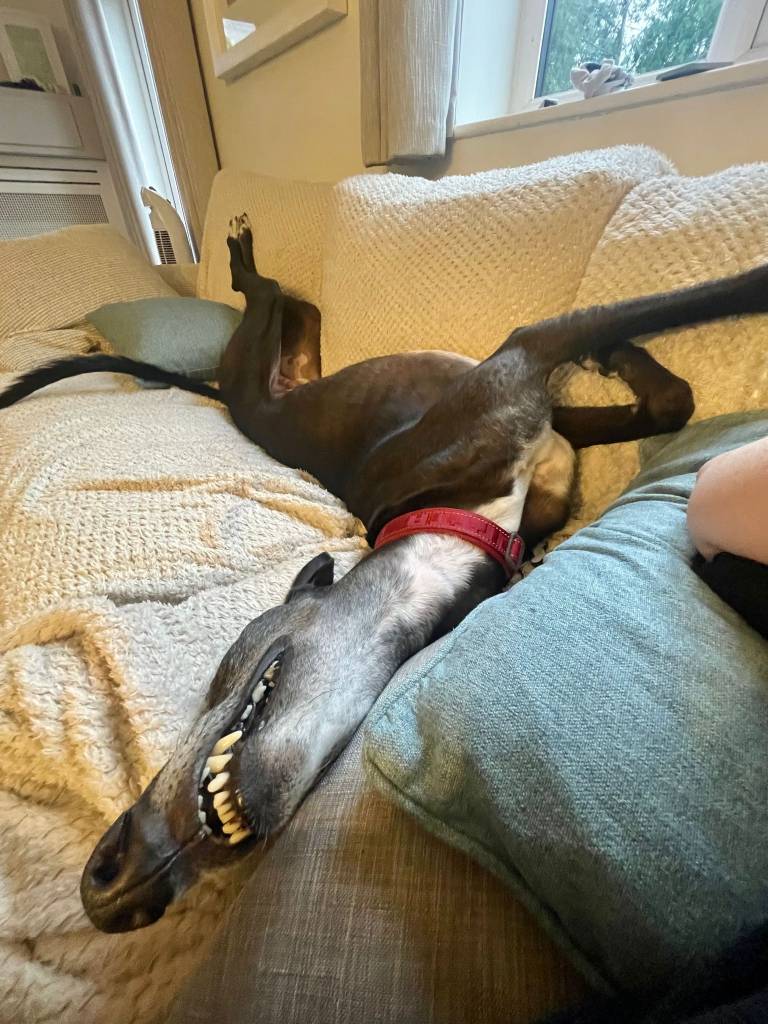 Plus, there’s thousands waiting for rescue at greyhound trusts around the UK so they cost £200 ish rather than £thousands for a retriever pub.