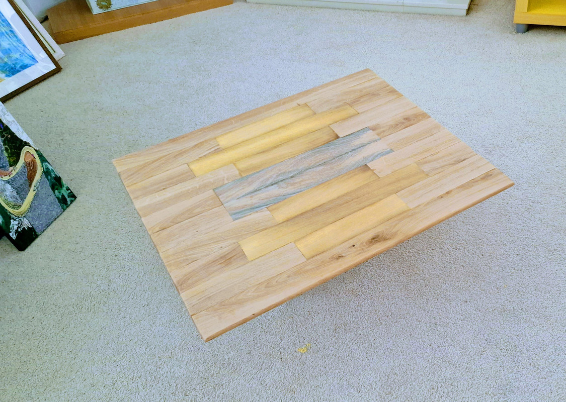 While I appreciate the skill in that shiny table it looks too much like the plastic wood tables you get in the warehouse furniture stores. This was the main reason I didn't want to use 'liquid glass' acrylic resin on mine which would have given a similar finish.