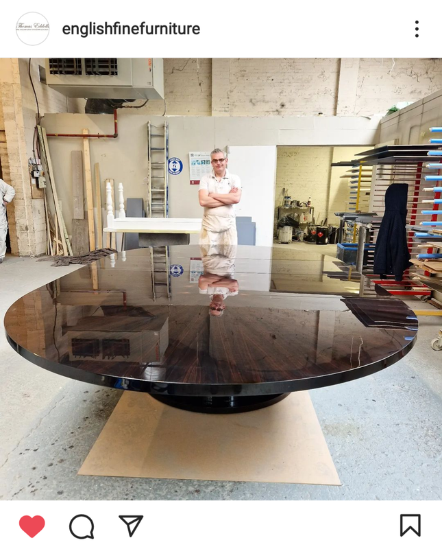 Talking about finishes, a friend/colleague of mine just finished this epic ebony dining table (which I veneered a tiny part of for him 😂) and it was professionally polished for him by a specialist company.