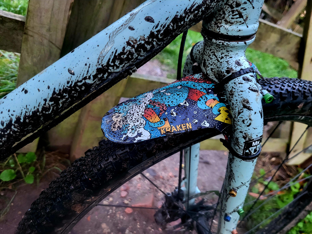 Kinesis Fendoffs on my bike, they are great, nothing above them gets muddy. I ride it off-road and have not managed to clog them up. The front flap does catch if you try and ride skate park though and I have to put velcro around the rear flap if I put the bike on the car rack otherwise it flaps incredibly fast!