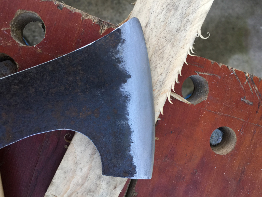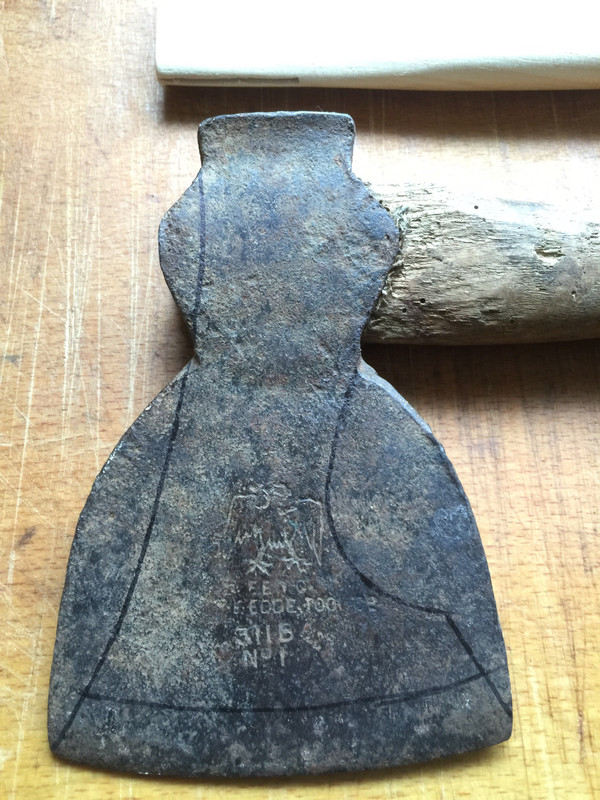 This is an old Kent style axe I found in the shed. I bought a new haft/handle for it, and drew out an outline of a bearded style head, then set about working on it…