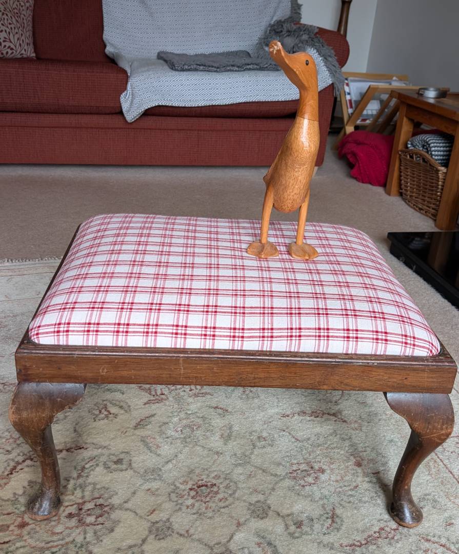 Bought a nice old footstool, but it's a bit old fashionedly dark. What's the best way to strip the old 'varnish'(?) off. And I suppose by extension, what do I then put back on it? Probably a shade or 2 darker than the duck, (which I see also needs a bit of attention, thanks dog. 🫤)