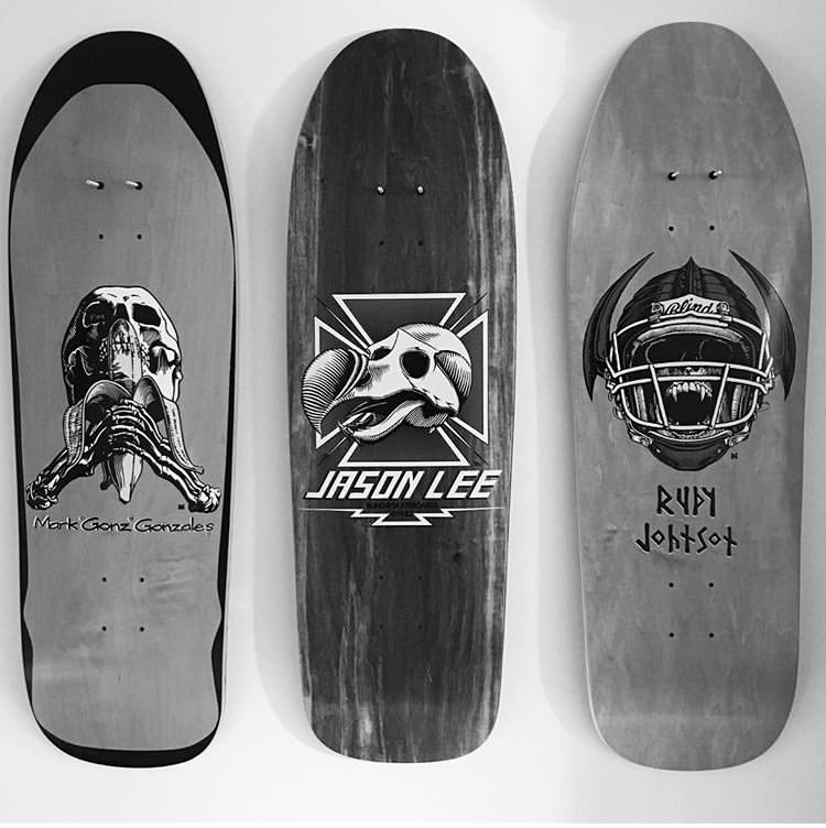 For the boards themselves….. for the most part they’re all the same – as in exactly the same. In our younger days most brands developed and manufactured their own boards, their riders would design and spec their own models, and magazines would pontificate on the shape of the concave and shapes of the nose and tail. Most brands now are just selling bought in blanks, with their logo added, that have all come from the same factory. So just get one with a picture on that you like. Thats no criticism by the way – the design of boards has matured – theres only really one right size and shape for a board if popping an ollie is your ambition – so why have a market place full of boards that are the wrong shape.