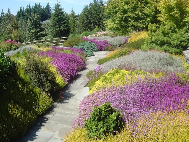 Lots of different heather? I know a few folk say 'how 1970's', but it works well as ground cover.