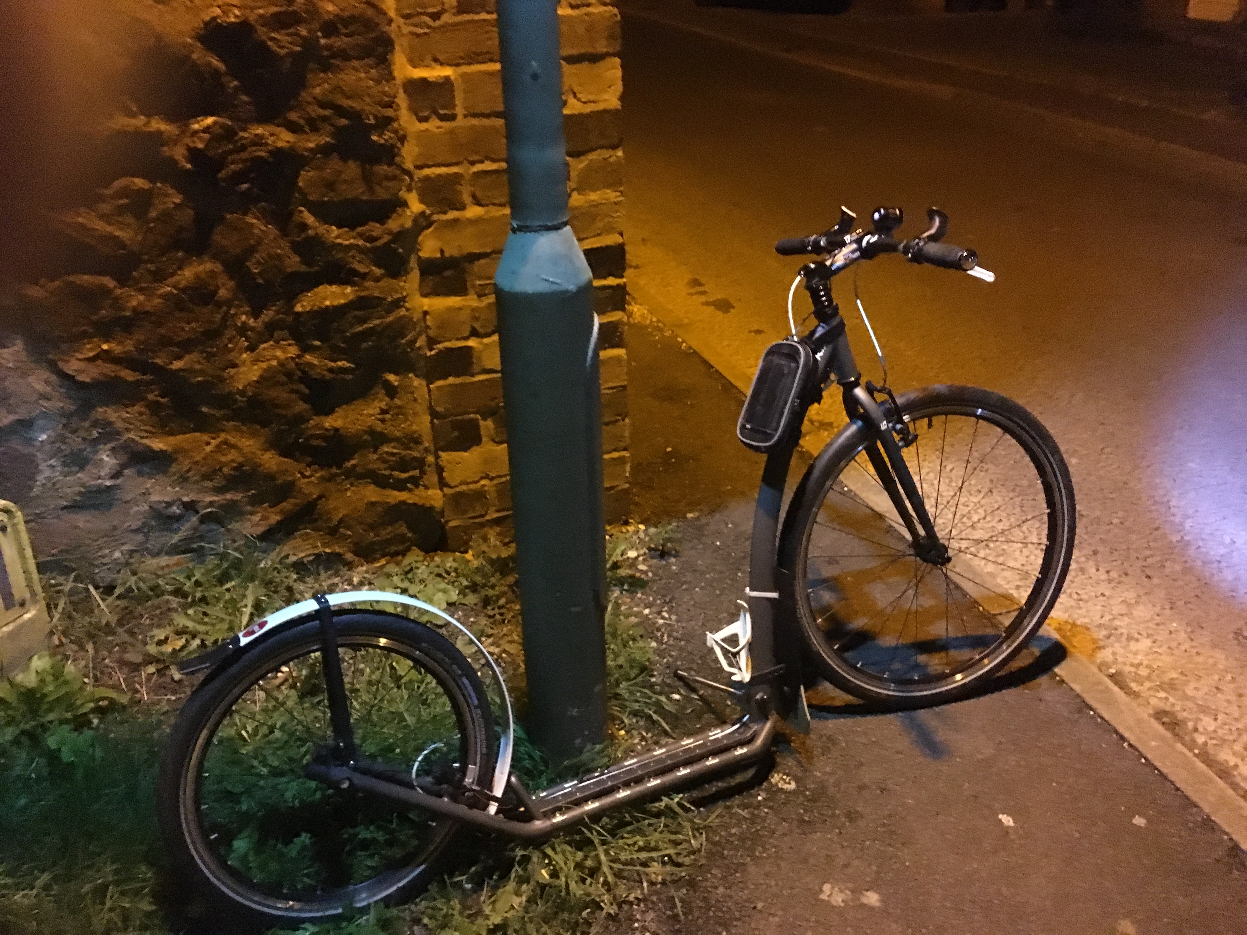 TBH the kick-bike has been the kick up the arse I needed as opposed to cycling (with gears), as the latter can easily mask a whole lot of weakness as one eases into slow winching and lots of freewheeling using little other than the already-muscle-bound legs. My wimpy upper flab was getting nothing by way of work.