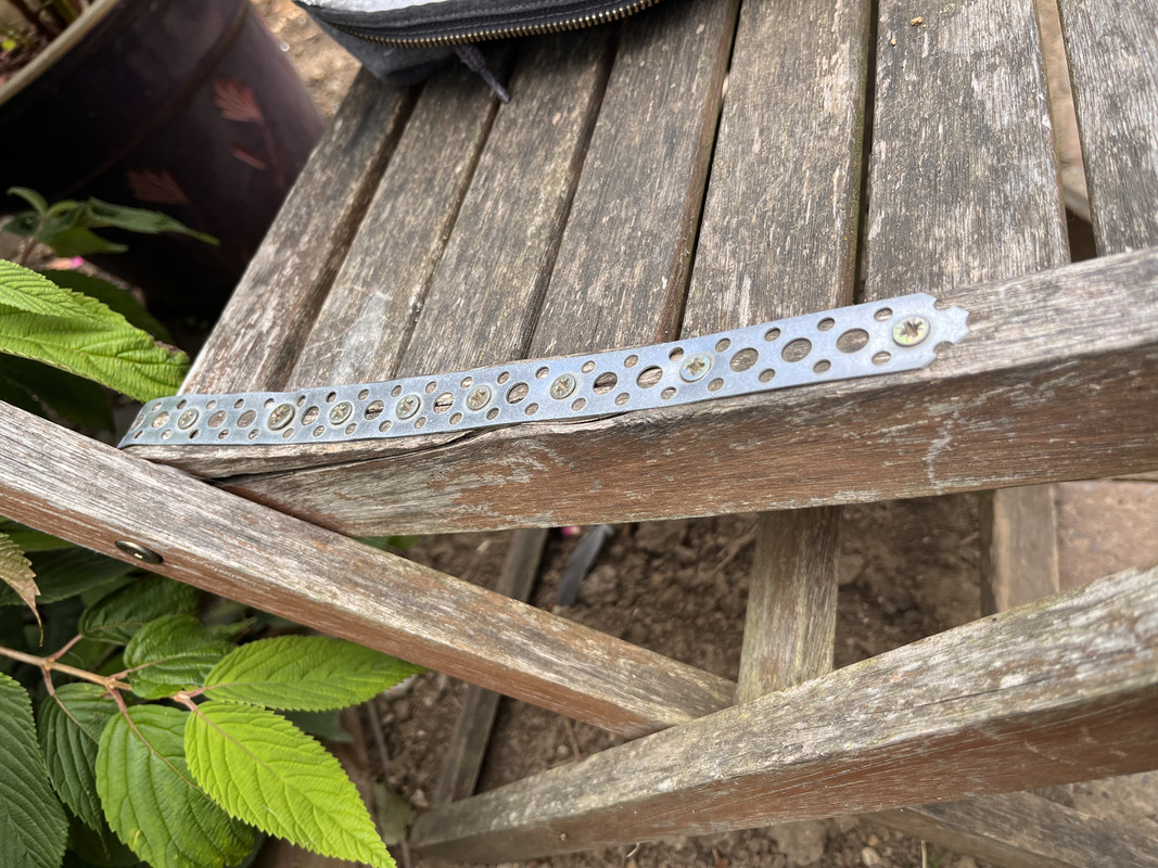 Bodged back into service using a bit of metal band and loads of screws…. Good for another decade I think!