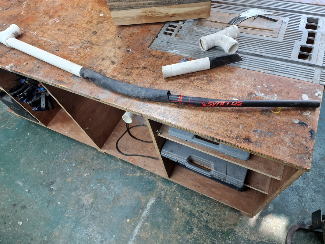 Kitchen broom handle made of paper thin shiny metal was kinked by the kids a while back and it finally gave way the other day. I cut the ragged new ends off the two halves and found a plastic pipe which happened to be exactly the same size so wouldn't fit. Hacksaw blade to cut down the length of the pipe and a file run up and down within the cut was just enough to create a snug fit for the pipe within the broom handle to join the two halves. #timesarehard