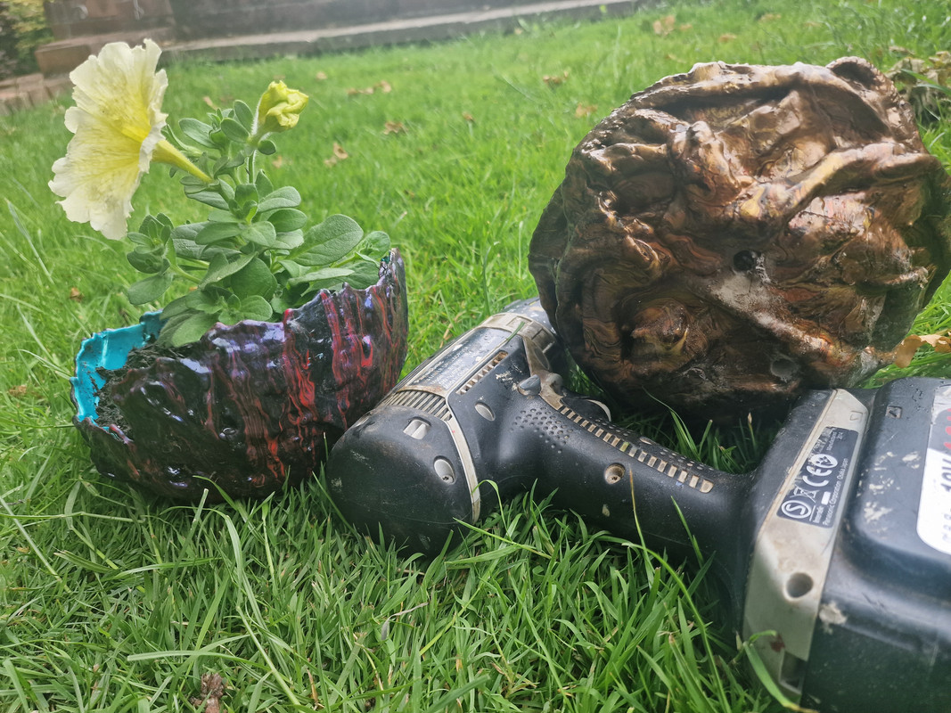 My wife decided that my ornamental painted bowls should become ornamental painted flowerpots. This was lovely but when it rained they behaved like bowls and filled with water.