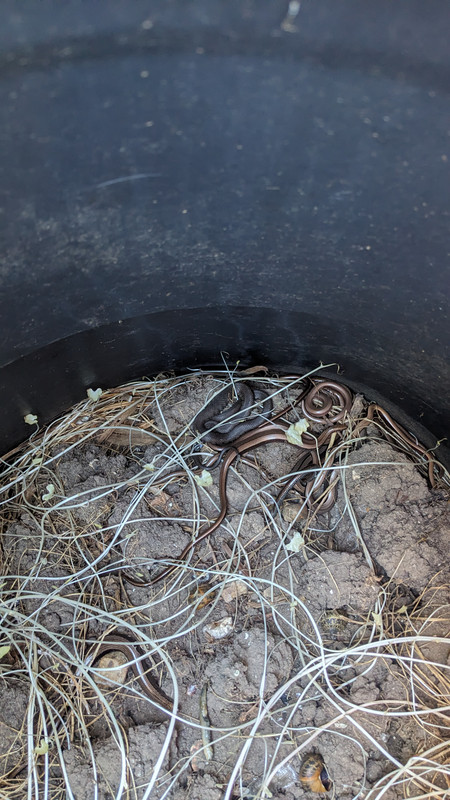 Seems pretty happy in there with all the slow worms. I’d agree with everyone else that it’s a melanistic grass snake, if you could see the sides of its head the two curved coloured band are a dead giveaway.