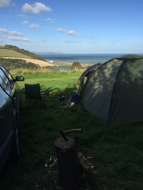 I know of a quiet little camping spot in South Hams, Devon. It’s very informal, you turn up, pitch your tent, and stick a tenner in an honesty box for each night you stay. There’s a basic loo block, just two loos with hand basin just inside the entrance, and a short length of hedge dividing it in two. It’s basically the fenced off top of a field, with a view across Start Bay towards Dartmouth. I’d driven down intending to camp at a wild camping spot a friend knew about near East Prawle, but decided to drop into Beesands first for a pint and dinner in the pub, and I spotted the sign for the site just outside Beeson and had a look. I was there for nine days, had a fantastic time.