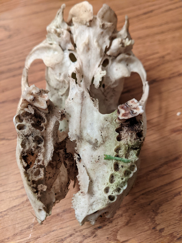 Me and my son finded a fellen off head skul fing when he was small, i still has it in me garridge. It was sameish as what the OPs’ won is and is definitely a dear, cos we finded the rest of da skellington what the head felled off of. Ribs n that. Them’s in a Shimano shoe’s box them is.