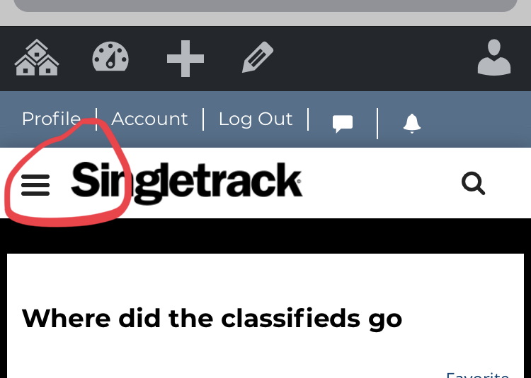The Hamburger menu is the three bars top left. Beside the word "Singletrack".