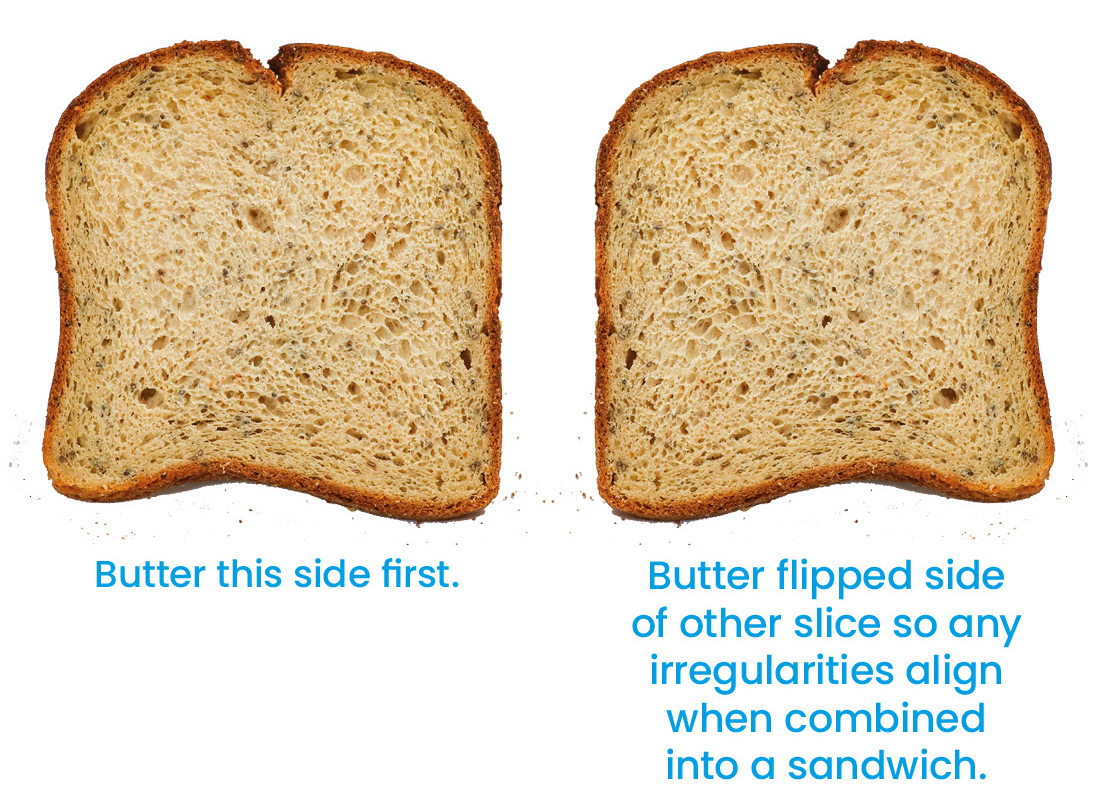 I made a sandwich this morning and while spreading I noticed the bread was upside down (ie with the top crust on the side closest to me).