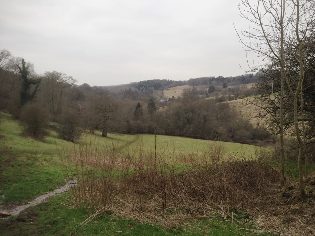 The little, light-coloured thing in the distance, just in the middle of the trees, is the Daneway Inn. That's a country pub if ever there was one!