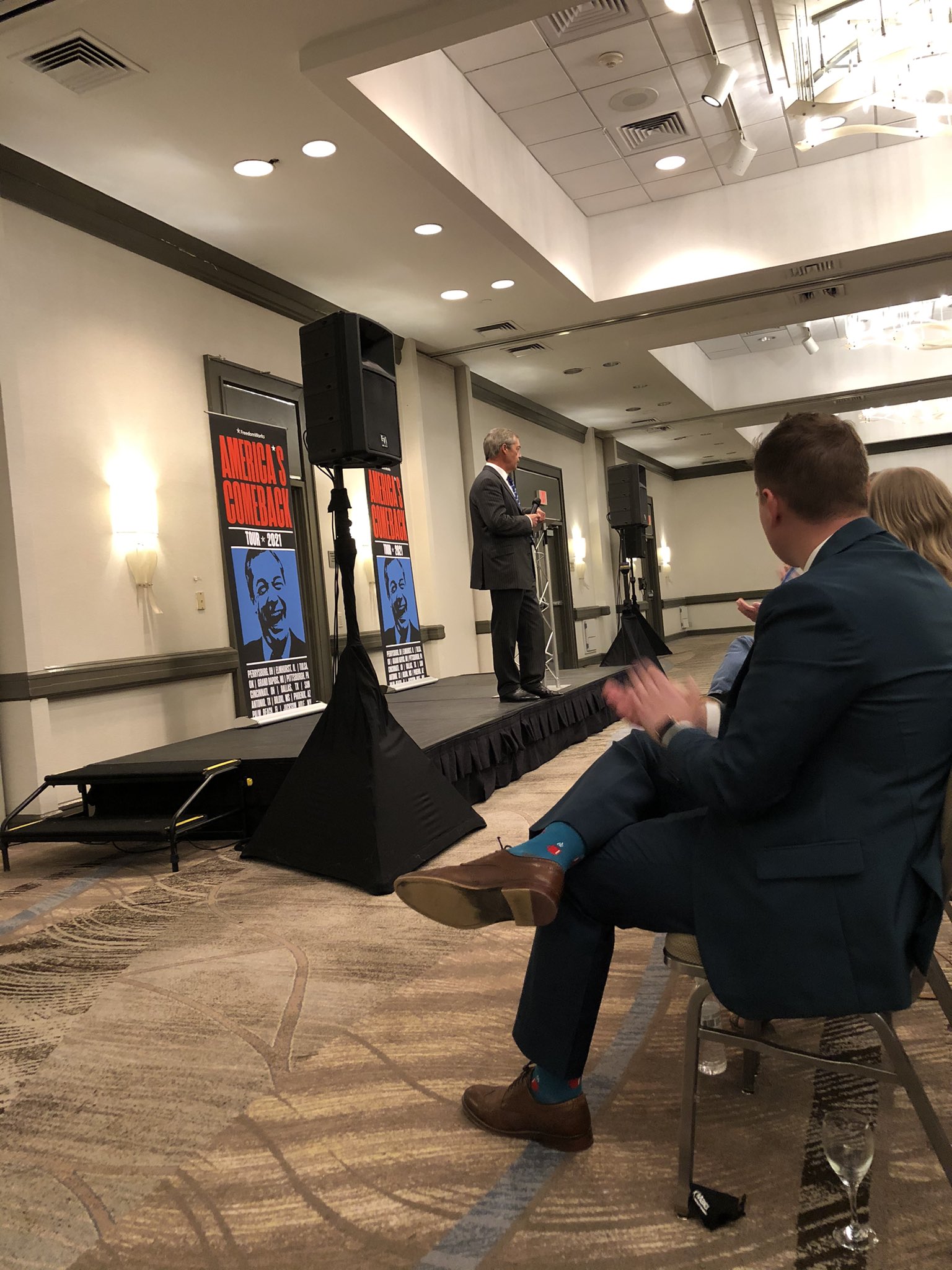 A quick glance at the FreedomWorks host organisation social media suggests it doesn't matter if anyone turns up or not. They film him and others speaking at a podium from the "front row", without panning or distance shots of the audience. Still images of the event use background-blurred close ups, or very selective imagery.