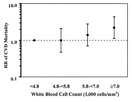 Here's something we do know: people with higher levels of inflammation have worse cardiovascular outcomes (a sugar-coated way of saying they die, of heart attacks and strokes). Here's some refs that specifically look at white blood cells (other markers of inflammation E.g. hsCRP are probably used more widely these days):