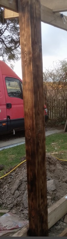 Built/wood butchered an enclosed pergola at my back door. Its made of chunky Rough sawn pressure treated timber with a douglas fir floor.