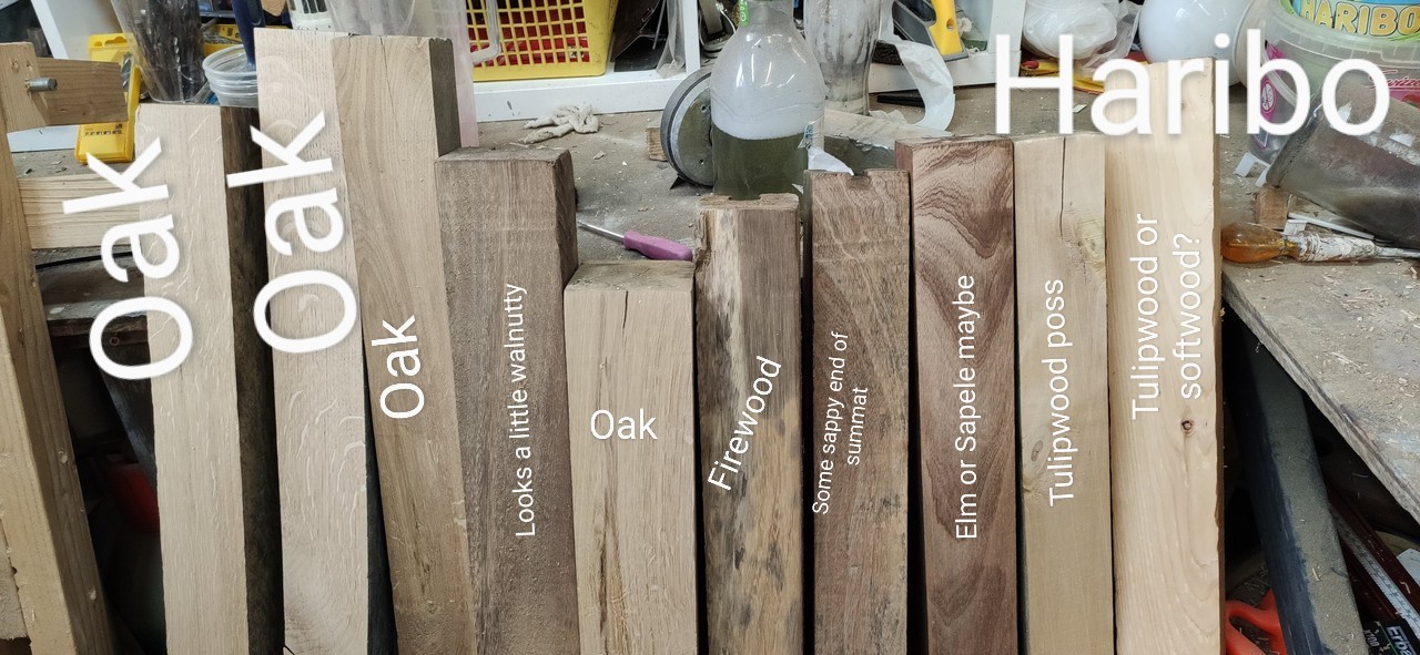 I went to the nearest timber yard had asked what hardwood they had going free / cheap that I could use to practice. They pointed at a pile of assorted wood, mostly about 10cm square and just over 1 metre long. I took what I could carry but when I asked what it was, he just said £30 and took my money.