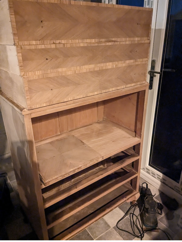 The top was 4 A4 sheets of vaneer patterned similar to the fronts, I'm guessing iron on veneers will look crap?