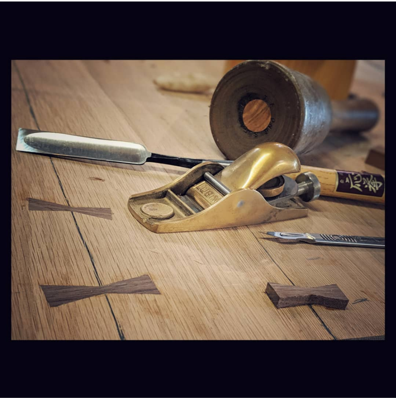Where you have an angled join between two different boards, I'd lay them across each other first to get the closest match then when jointed I would tend to use an angle grinder with a flap disc and just blend them into other as best as I could following grain lines as much as possible.