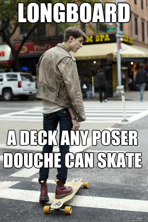 I've got a Sector 9 longboard but my internal monologue still thinks I'm about 25 and judges me. I'm nearly old enough to not care, but not quite.