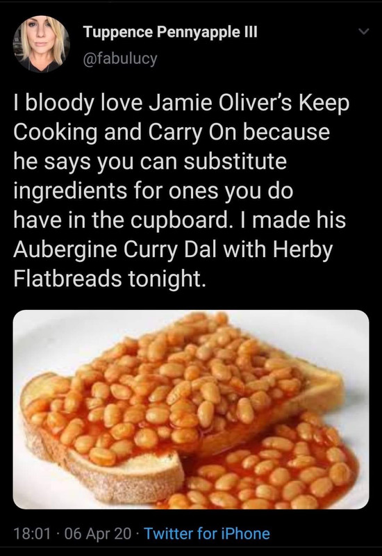 The Guardian food bit is mental in general. Here is their easy pantry dinner to get you through lockdown: