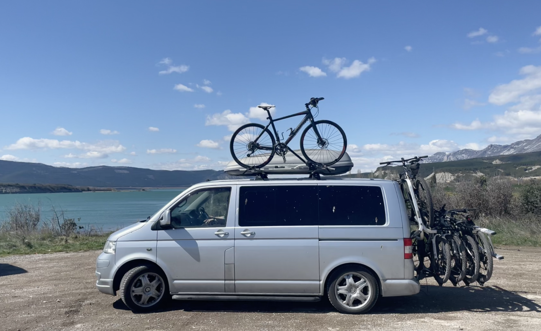 Aging Caravelle tuned to 207bhp. On the way to Ainsa carry 7 bikes (there's one inside), getting hard to maintain now just had to put a new cylinder head on it. Currently the eklecric windows won't work, the drivers door handle is broken and needs a new door card to fix and bonnet cable snapped last week. But its part of the family an will be with us until they've all gone.
