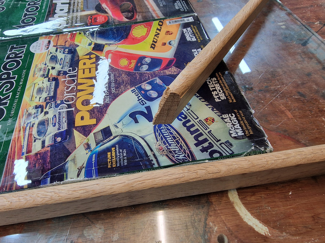 I had the very last oak post I managed to buy from the timber merchant to make the original coffee table. I hadn't used that because it had some nasty nail holes in it but with careful cutting I was just able to get the 4 planks I needed to make the edges of the table.