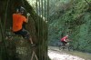 Uk designed and Belgian made, the Euro roots will come out in the race bred handling. High-ish (67mm drop) BB for pedal clearance in ruts and hoiking round 180 dead turns, and loads of shouldering room with a traditional (rather than sloping) top tube. A standard 1-1/8th headtube surrounds the carbon fork and despite the Flemish heritage, there are no canti brakes here – the x2.0 frameset is disc only.