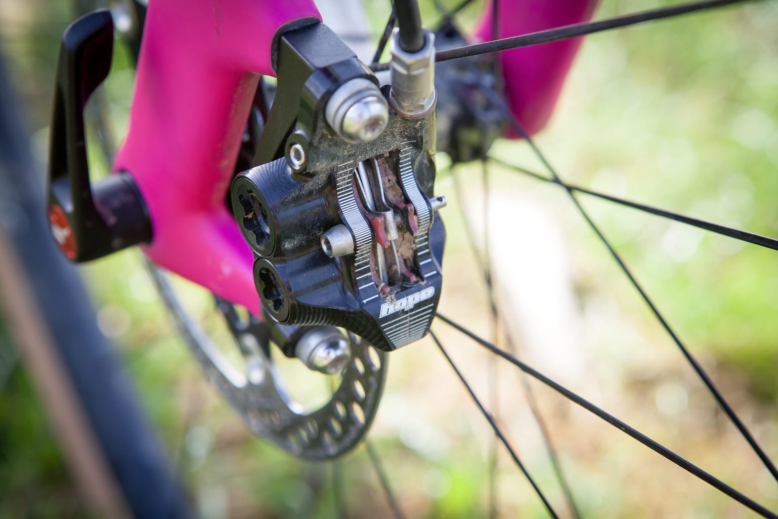 Hope claims that the caliper weighs 123g – our SRAM post-mount replacements came in pretty much bob on. A quick check of the Force caliper it replaced revealed it weighs 88g – so you are adding around 70g in total. Minimal in the grand scheme of things, but will disappoint some who would like an upgrade to save them weight.