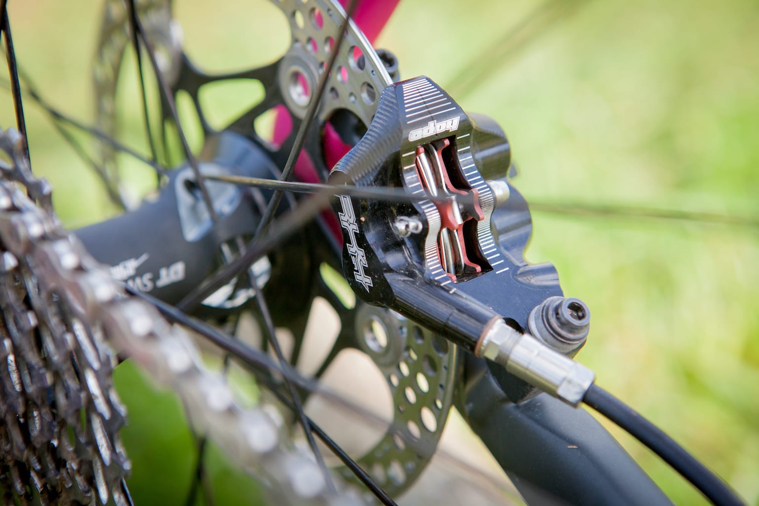 What else sets the RX4 apart from the two big-Ss? Well, Hope being Hope offers the RX4 in a range of anodised colours – which of course match its headsets, seat clamps and other trinkets. We also ran the Hope floating road brake rotors. These come with rounded edges to prevent any crash-related peloton mishaps, but are otherwise near identical to Hope’s MTB floating rotors. The calipers will work perfectly well with stock rotors though.