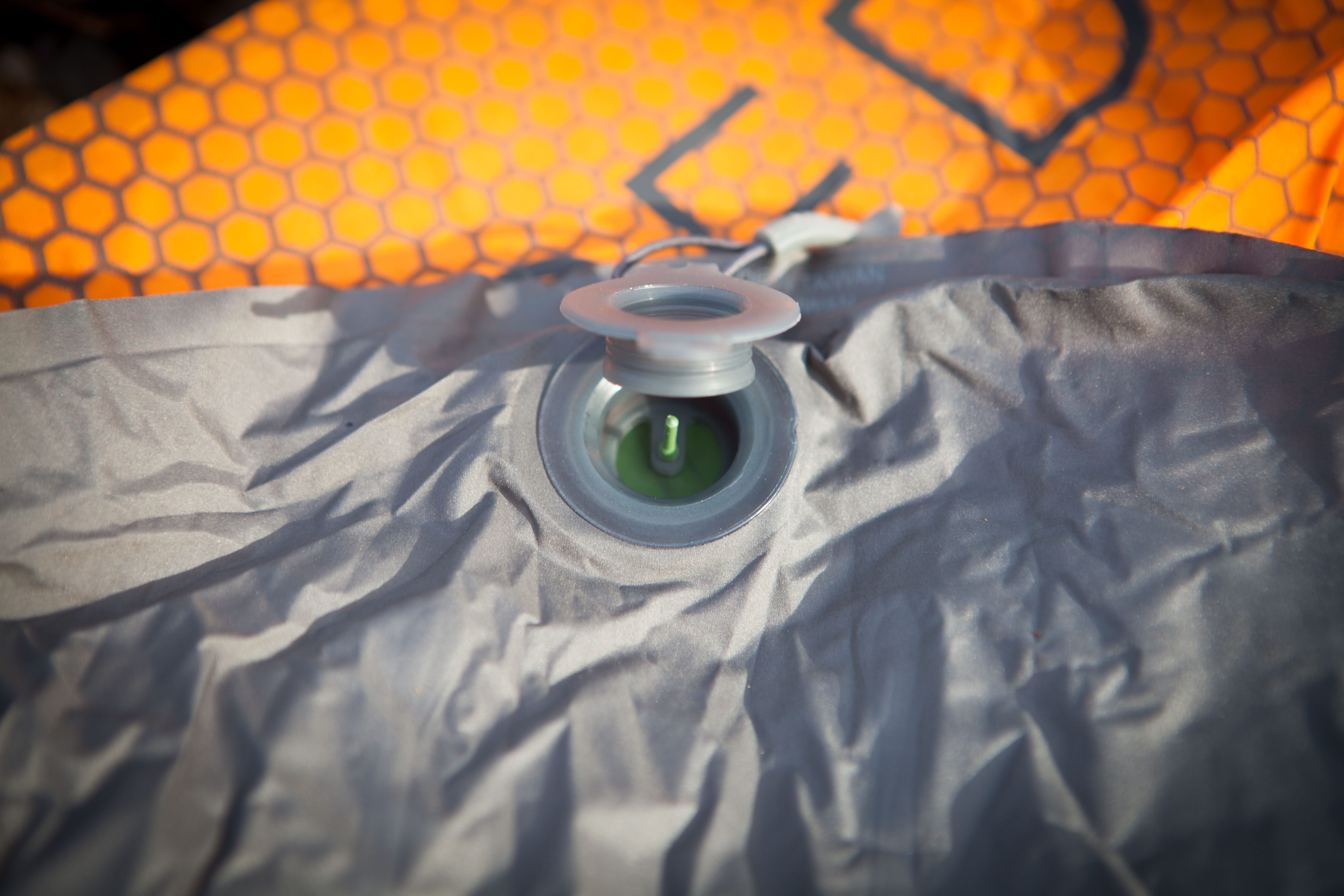 The Synmat inflates via a simple one way valve at the top. Exped provides a “Schnozzel Pumpbag”, which allows you to inflate the mat quickly, while preventing humidity from your breath affecting the insulation. It also doubles as an ultra lightweight compression stuffsack, although I stuck to using the regular stuff sack – it was easier to create a compact package. Deflation is via the same valve, using a small zip puller tab to hold the valve open while you squeeze air out.