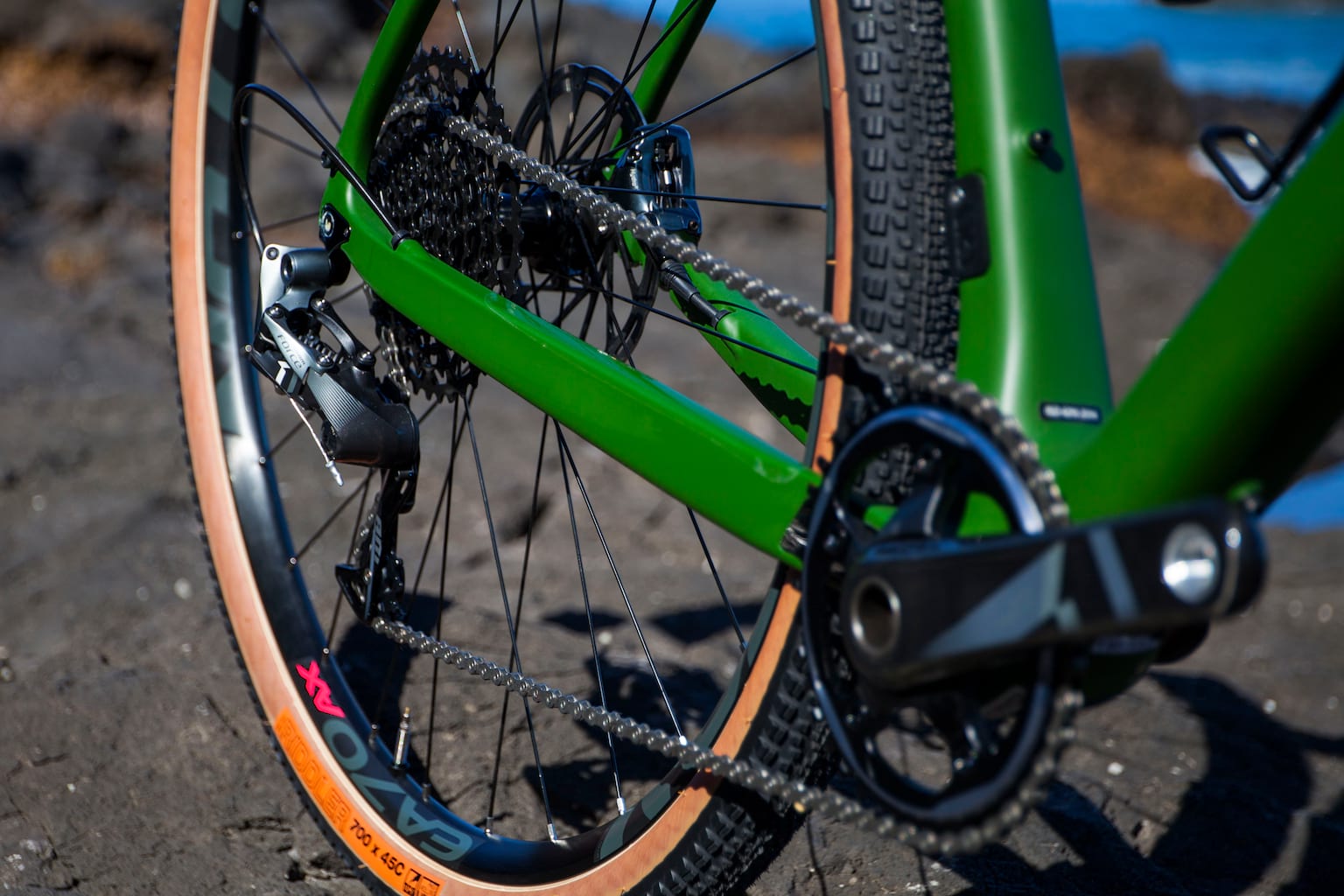 My bike for day 2 was the new-to-the-range Kona Libre DL. We covered the Libre launch a couple of months ago, but in summary, there are two models – a 650b wheeled, double chainset version (the Libre – £2899) and my 700c, 1x set up (the Libre DL). The same frameset is shared between both bikes, with a choice of eye popping purple/green/blue metallic paint or military green. Both options looked pretty classy, as did all of the bikes to be fair.