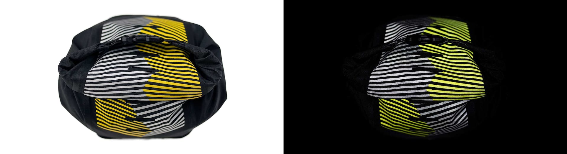 Light attachment points are laser-cut into the fabric, increasing rider safety without adding unnecessary weight. A high-contrast reflective feature is specially designed to enhance visibility in all light conditions.