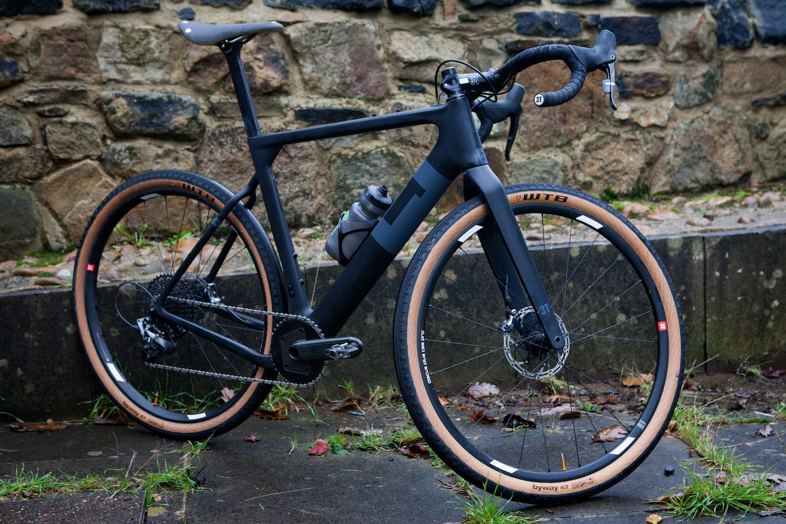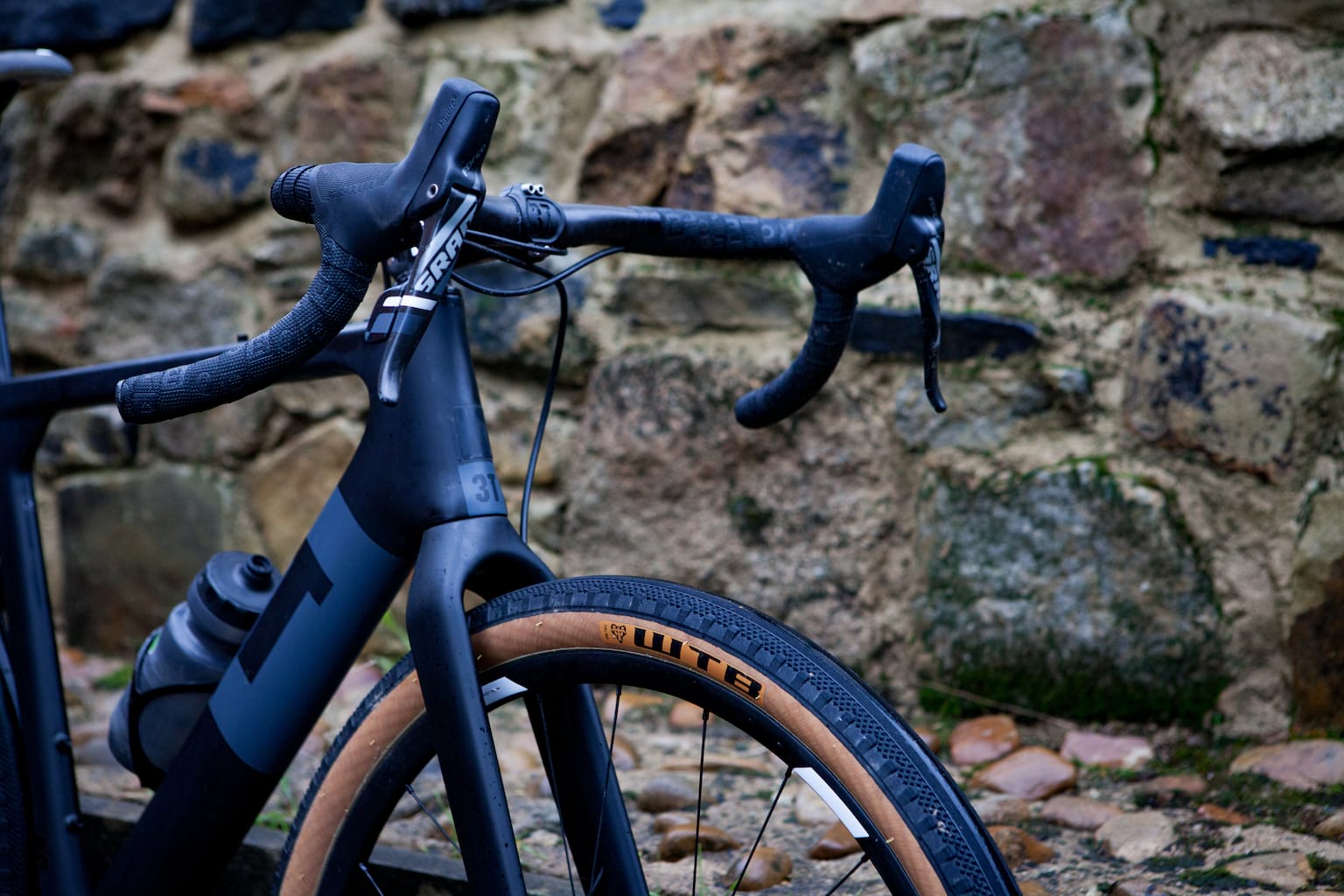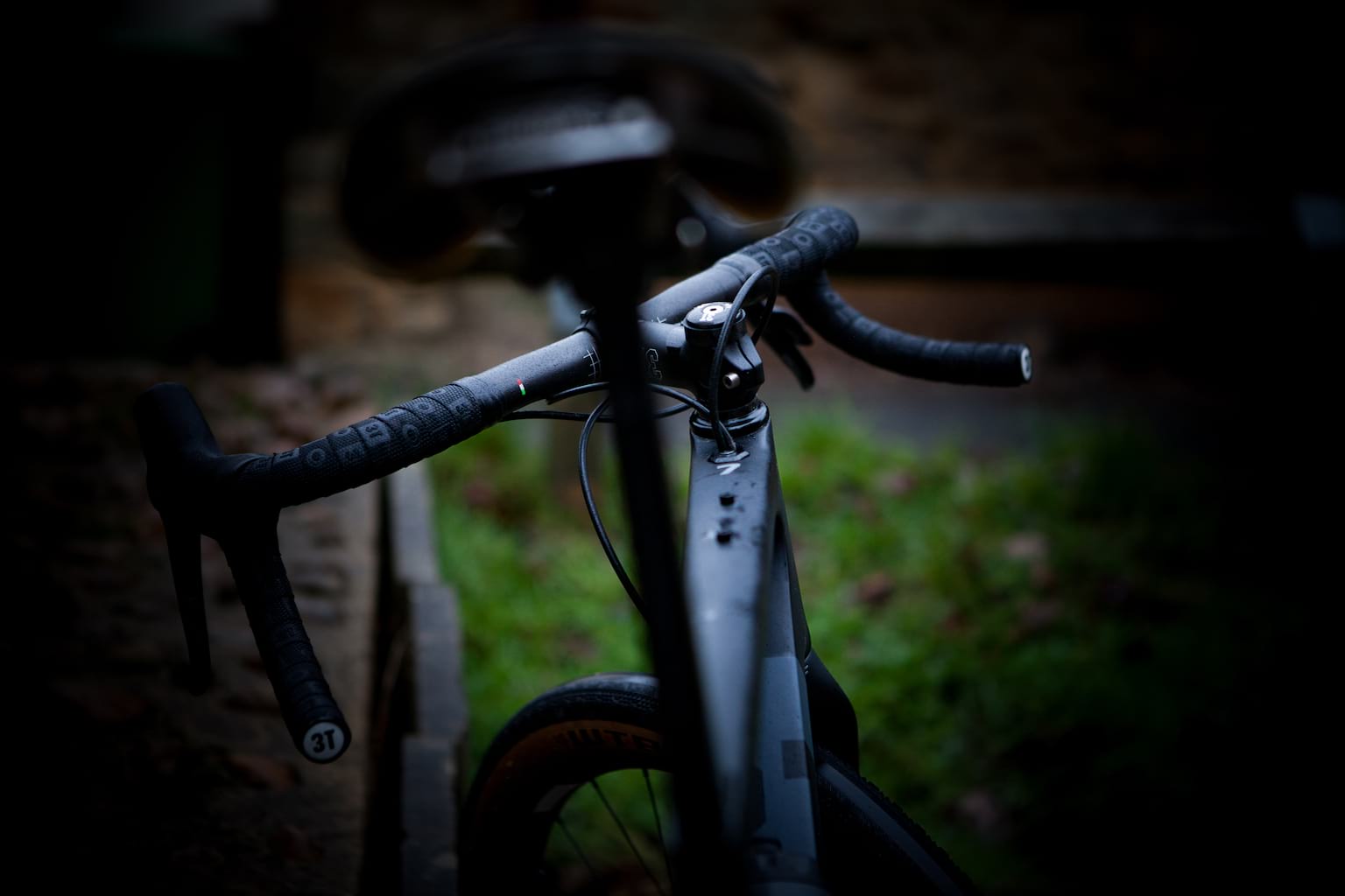 Now, the Exploro is only sold by 3T as a frameset. Its UK importers, Saddleback does offer full builds, but this is a one-off bike, owned by Paul Errington. Paul is probably best known know as the organiser of Grinduro in the UK, but is also a pretty handy endurance racer and self-confessed gravel lover. He’s supported by 3T and Komoot, and was happy to lend us his “spare” bike to test for a few weeks. We look forward to the day when our spare bike is this high end, rather than a hotch-potch of donor parts, seized components and flat tyres…