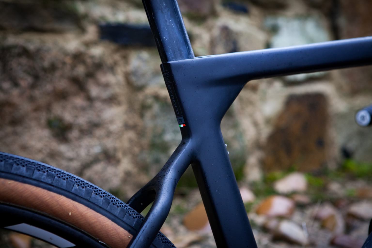 There’s a strange mix of fitment options on the Exploro. 3T thinks that its riders won’t want to fit guards or panniers, so there’s no rack bolts. There is a set of bolts for a bento-box style toptube pouch, and a couple of different positions to mount a bottle on the downtube (as well as a seat tube mount) though. Basically, 3T sees this as a no-compromise go fast bike, even if you are strapping soft luggage to it. Think bike packing, not touring.