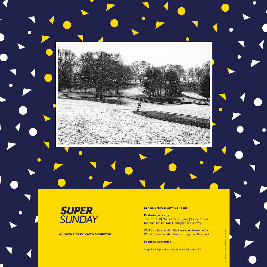 Feeling inspired by his first full season, Rich has decided to host an exhibition showing off what he loves about the sport of ‘cross, and featuring the best photography from the Yorkshire Series. Super Sunday is that event. It obviously helps that he’s got access to a brewery tap that has plenty of space to host such an event, but he’s gone to a lot of work, pulling together seven photographer’s and showcasing them.