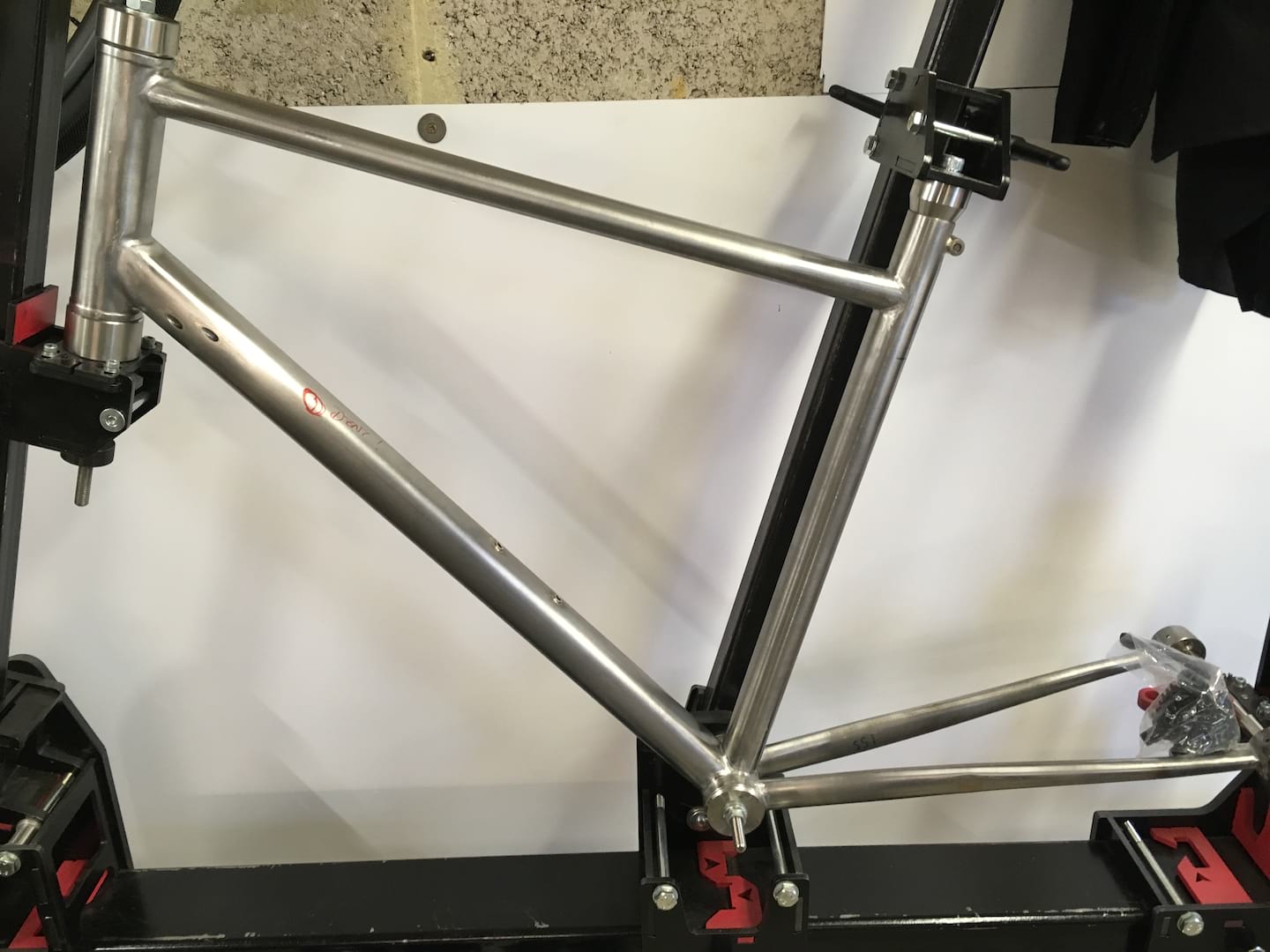 Scrolling through Instagram one day, I spotted a photo of a partially built frame; nothing hugely unusual there, I follow quite a few frame builders who regularly post their works in progress. I then spotted that this was the handiwork of my mate Jim. Like many of us, he’s the kind of guy that lives for riding bikes. He’s always great company on the trail and keen to help you avoid trail obstacles: “this is where the muppets crash”… “oooph”. Fortunately Jim’s as quick to take the piss out of himself, as he is others. He’s (usually) a talented and quick rider who also pays a lot of attention to his bikes. Jim likes them to work perfectly and enjoys putting in the workshop hours to make sure that’s the case.
