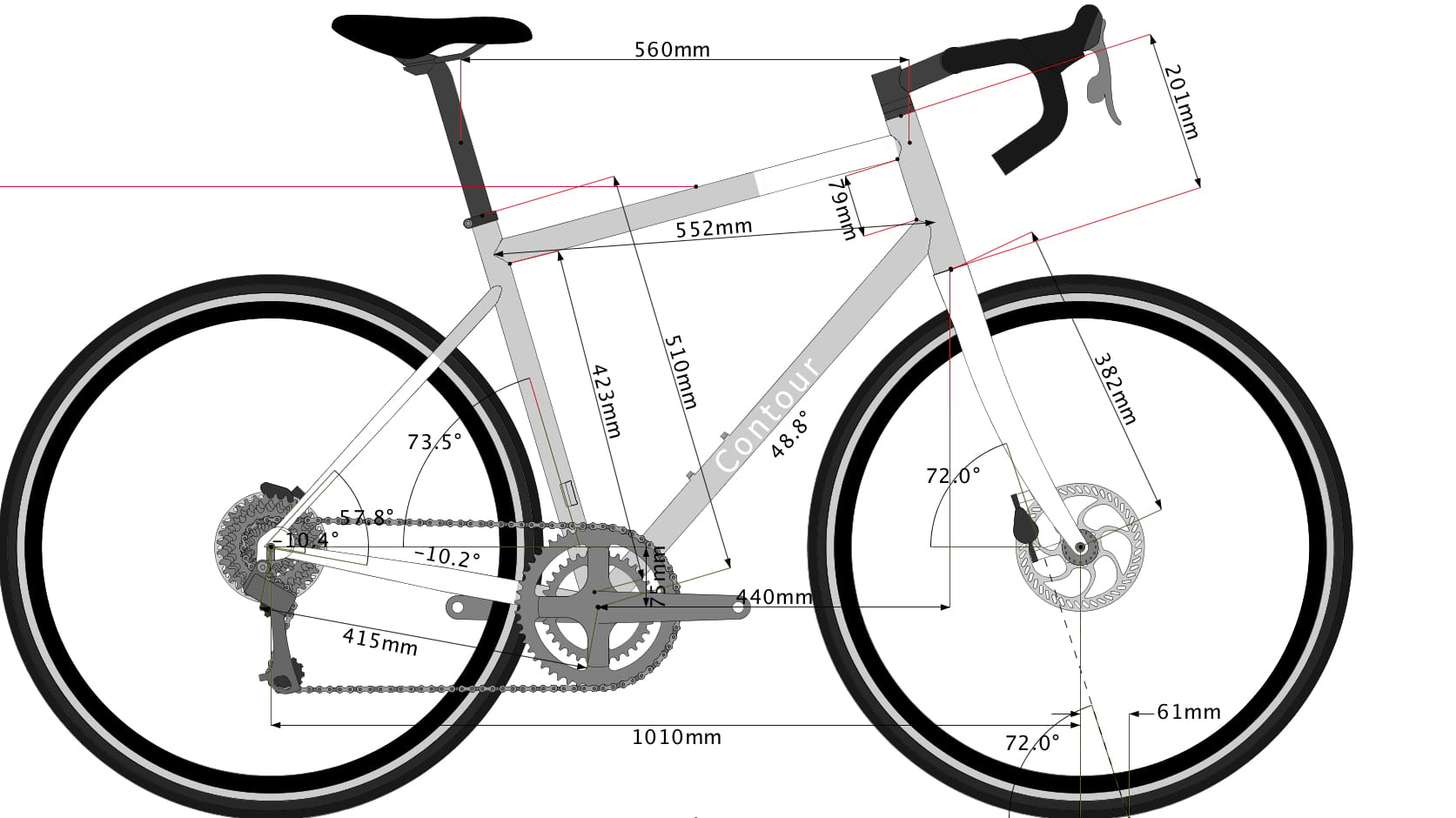 - Head angle 72º, BB drop 70mm, chainstays 420, wheelbase 1030, standover 770mm