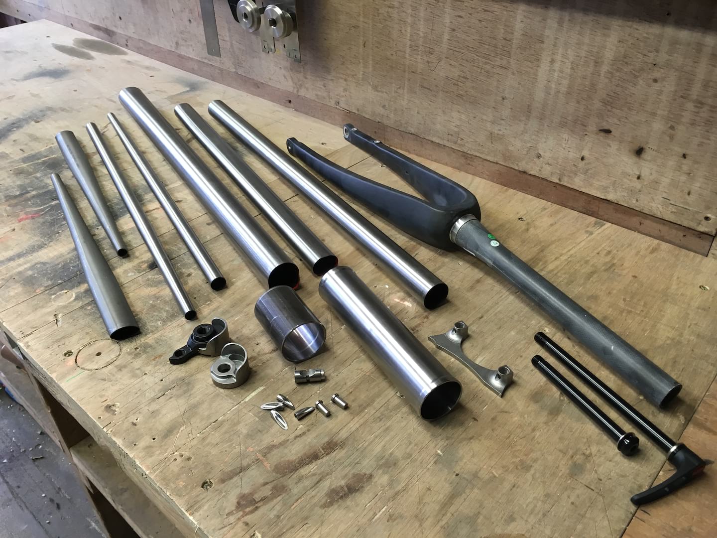 “We had to either accept a standard looking bike given my limited tooling resources or look elsewhere for inspiration. I found some tubes in the Columbus catalogue that looked really nice and fitted the bill and then worked out where I’d use Reynolds and where I’d use Columbus. The fork was always going to be a carbon Columbus one so it all starting stacking up nicely.”
