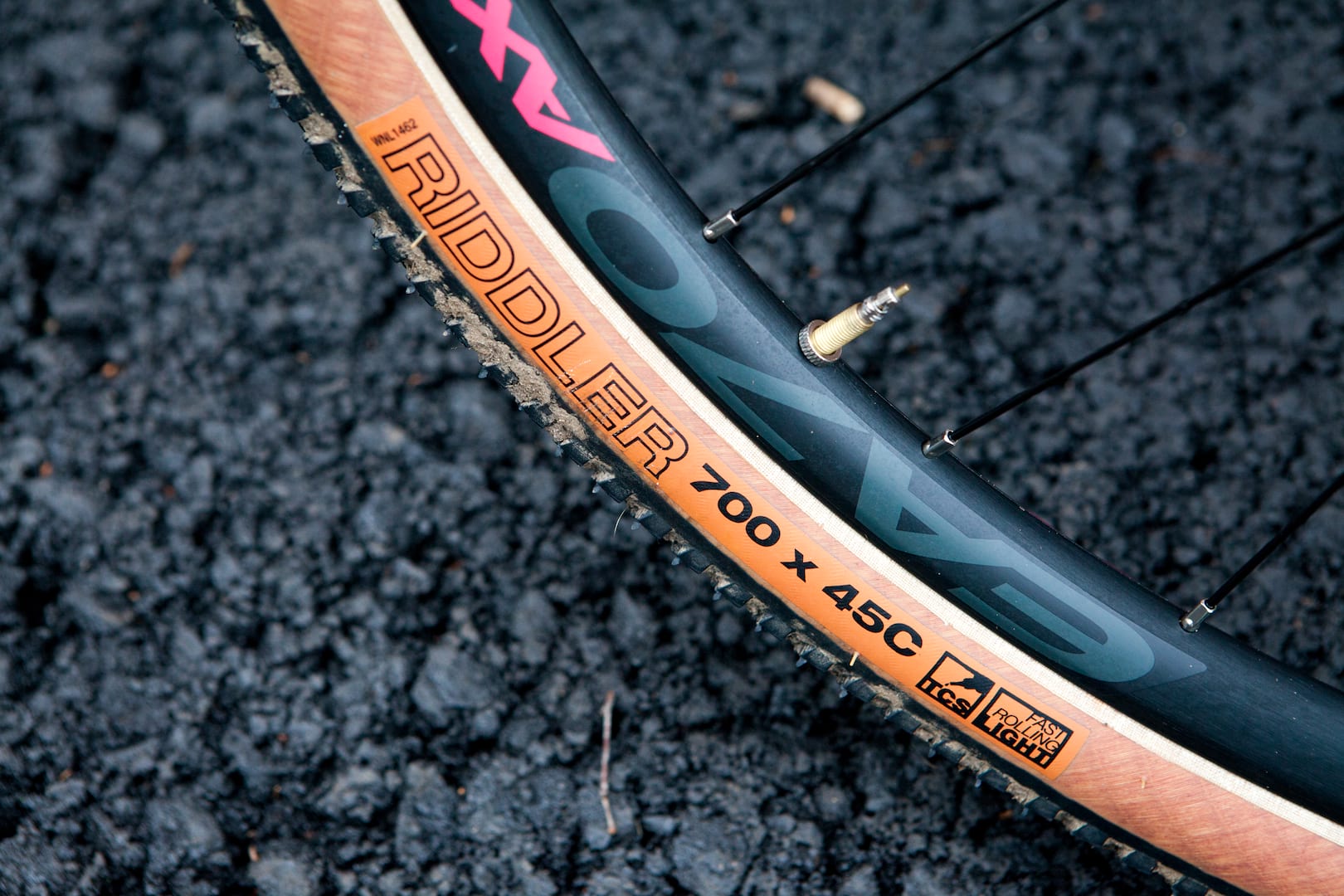 The Easton EA 70AX wheels are lightweight, and 700c x 45 feels like our goldilocks size for gravel riding. The WTB Riddler is a good in-betweener tyre, with a fast rolling central strip, but a bit more bite on the edges.
