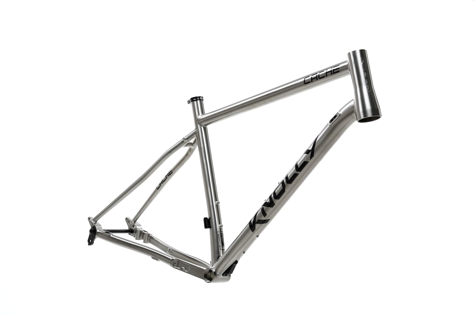 Knolly has clearly put a fair bit of thought into the details of the Cache. It has a threaded BB shell, custom right side chainstay yoke, custom cable ports, custom tubing throughout, full mud guard mounts and some clever joining of the down tube and seat tube to accommodate a fully internally routed dropper.