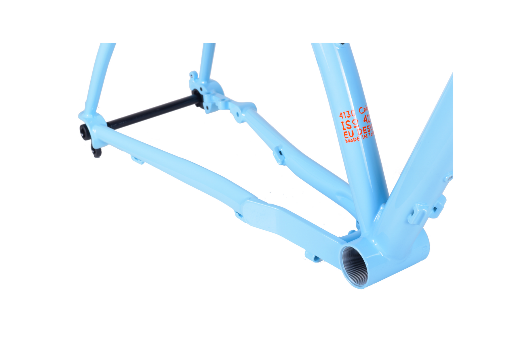 The Albarda frame is a 4130 chromoly steel frameset, using double butted tubing. It is designed with some hefty tyre clearance – all the way up to 700 x 50c (or 650b x 2.1in… lets not get into the metric/imperial mismatch here). A Ti version is also available.