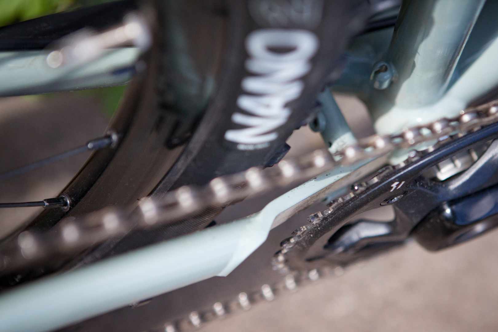 Getting the ruler out and comparing the chainstay with the geometry chart, this is a Small sized frame, which will be most prone to toe overlap.